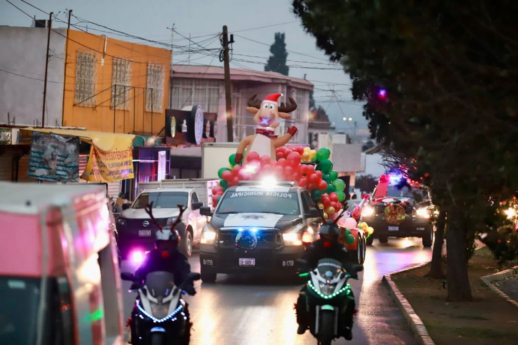 Encabeza alcalde Chema Fraustro caravana navideña con policías municipales